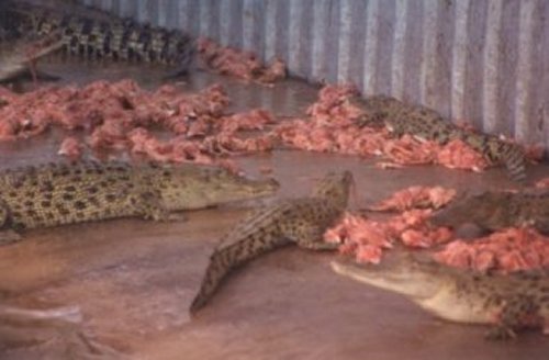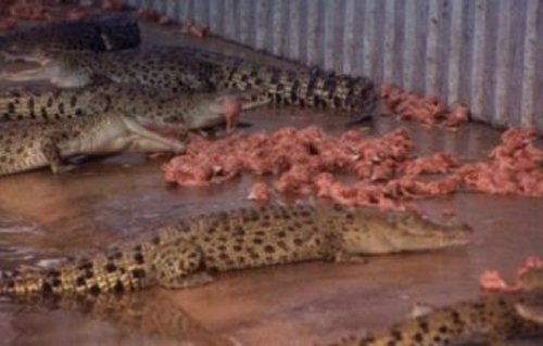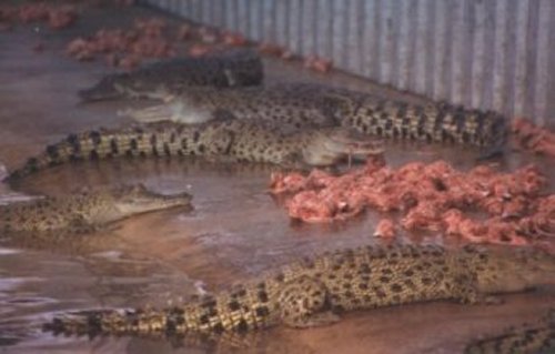 Every year the Northern Territory Conservation Commission supplies the crocodile farm with crocodiles from the Darwin harbour in a constant clearing out process, that is meant to keep 'people places' basically crocodile free. All these captured wild crocodiles face years of unnatural confinement and eventually death at the farm. Spectators ride in the ute with beer and video cameras at feeding time.
