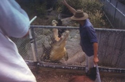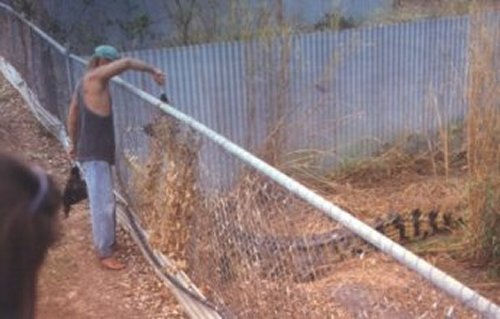 The manager of Janamba and the channel pens. He said, 'Once you've got 'em programmed and near set to a pattern they're happy.' He had been previously a pig farmer, he mentioned that intensive crocodile farming was the same as intensive pig farming - just a different animal.