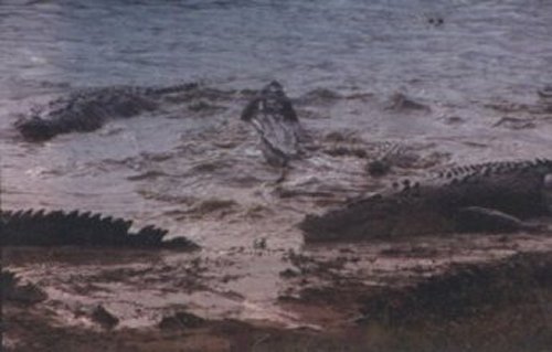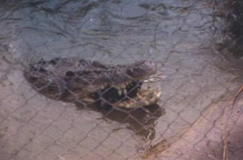 A unique feature of the Janamba Crocodile farm is a huge lagoon containing a few hundred crocodiles. It was popular with the tourists at feeding time. Dead hens were thrown to the hungry crocodiles who thrashed around in the water attacking one another in the rush to get food. Only a few hens were thrown in for the disturbing spectacle.