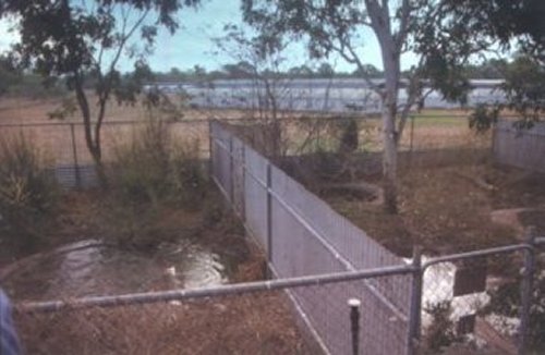 There are 10,000 crocodiles on the Janamba Crocodile Farm at Humpty Doo. The layout includes one incubation block, 20 channel pens, 37 paired breeding pens and 5 acres with 5 lagoons containing a couple of hundred crocodiles. This is the gateway to Janamba Crocodile Farm.